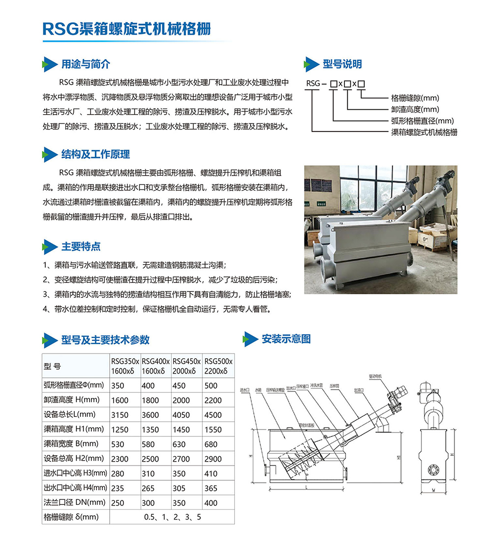 RSG渠箱螺旋式机械格栅